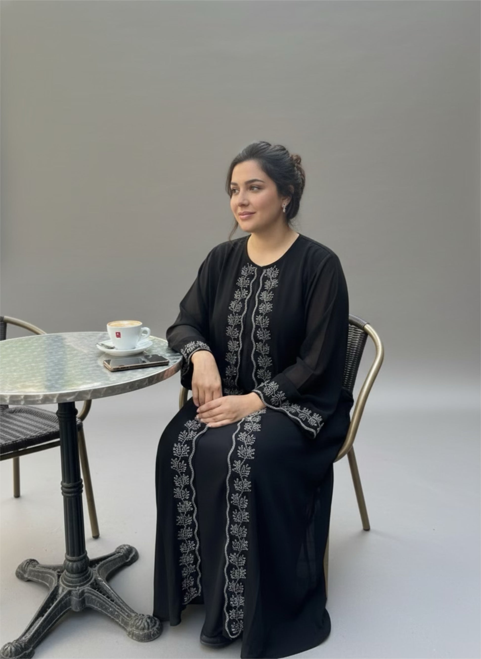 Elegant Black Front Open Abaya with Short Sleeve Inner Wear – Floor-Length set 3